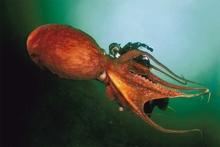 One of the commenters over on Pharyngula suggests this imade from Speigel is actually a shot of an octopus bringing home groceries, but I prefer the other commenter’s suggestion that the diver is giving some heavy cephalo-oral. Click to enlarge, if you dare! Taken off the Queen Charlottes in BC.